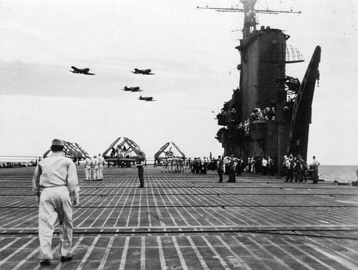 Despite a superstition against changing ship names, the crew of the CVE-63 was informed their vessel’s name was now the USS St. Lo while they were already deployed to the Pacific and preparing for the Leyte invasion in the Philippines. Just 15 days later, the St. Lo was sunk in the first kamikaze attack of the war.
