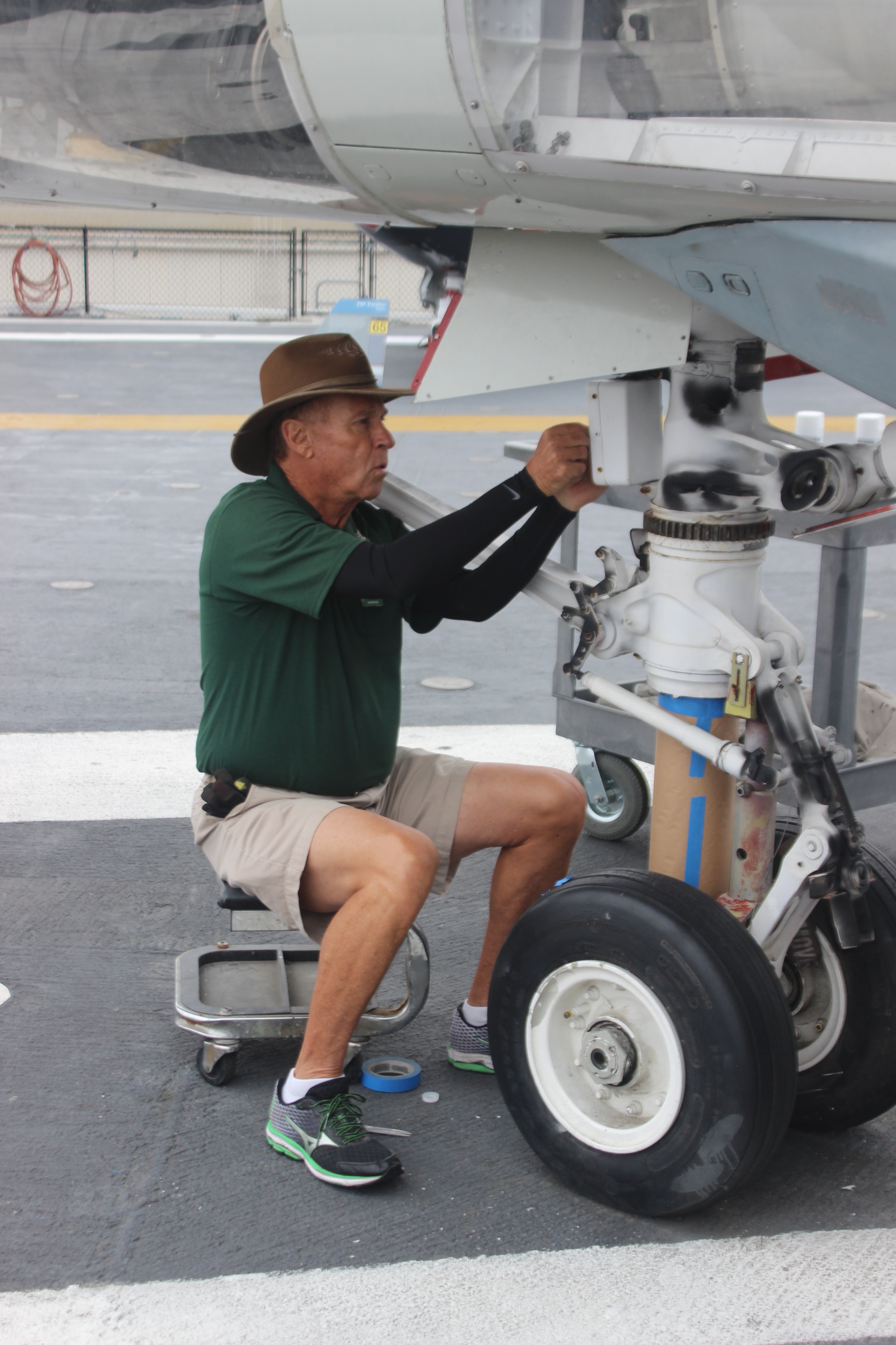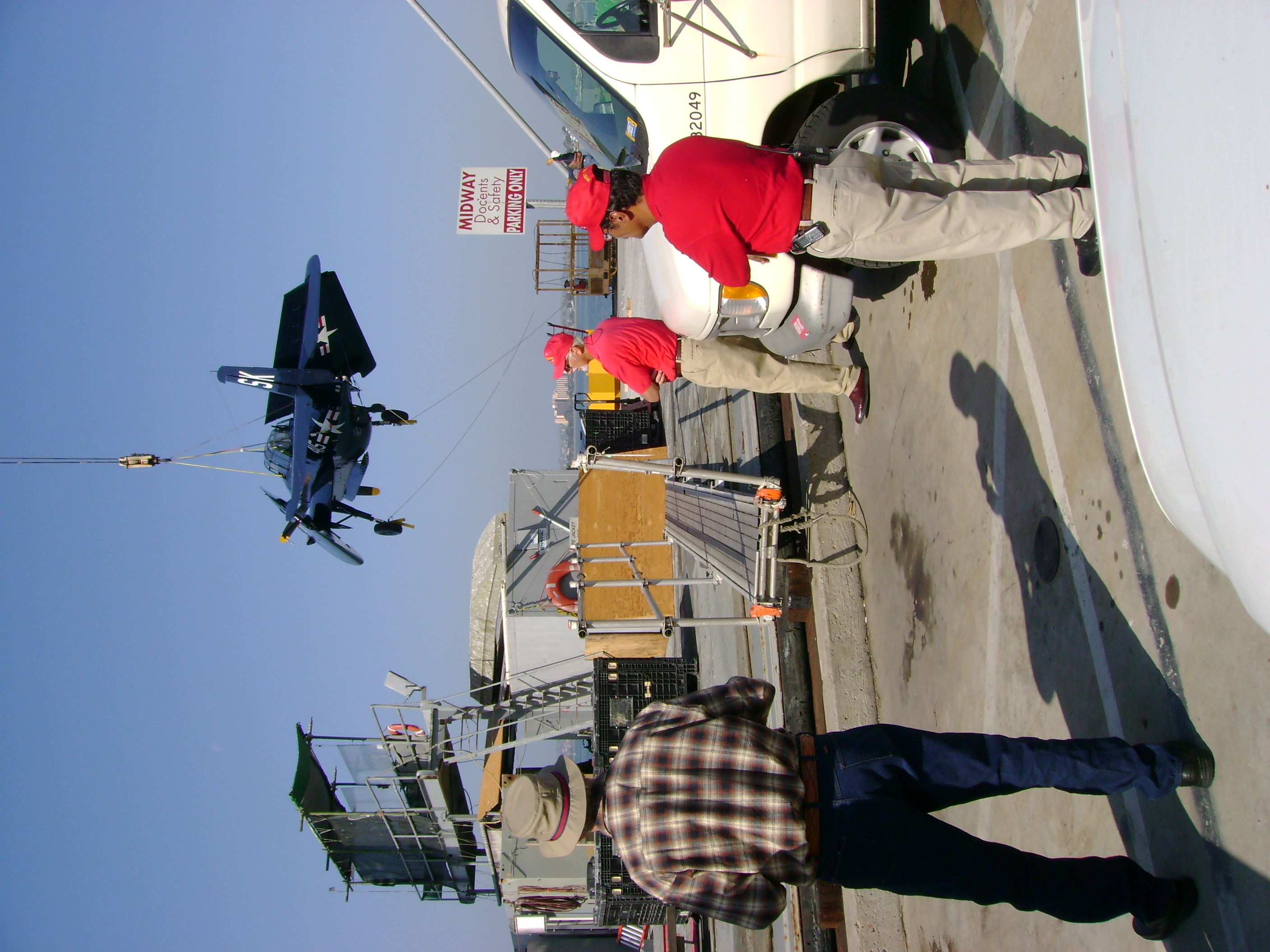 About this time, Walt Loftus reported aboard after a career at the very paint facility on North Island that applied the markings to all our aircraft. Under Walt’s leadership, the airwing staff established a detachment aboard Midway to continue the upkeep of exhibited aircraft and other aviation-related displays like the aircraft cockpits, ordnance, and ejection seats. To allow for more in-depth inspections and repair of aircraft on display, Walt helped develop a schedule of rotating individual planes from the ship back to Hangar 805.