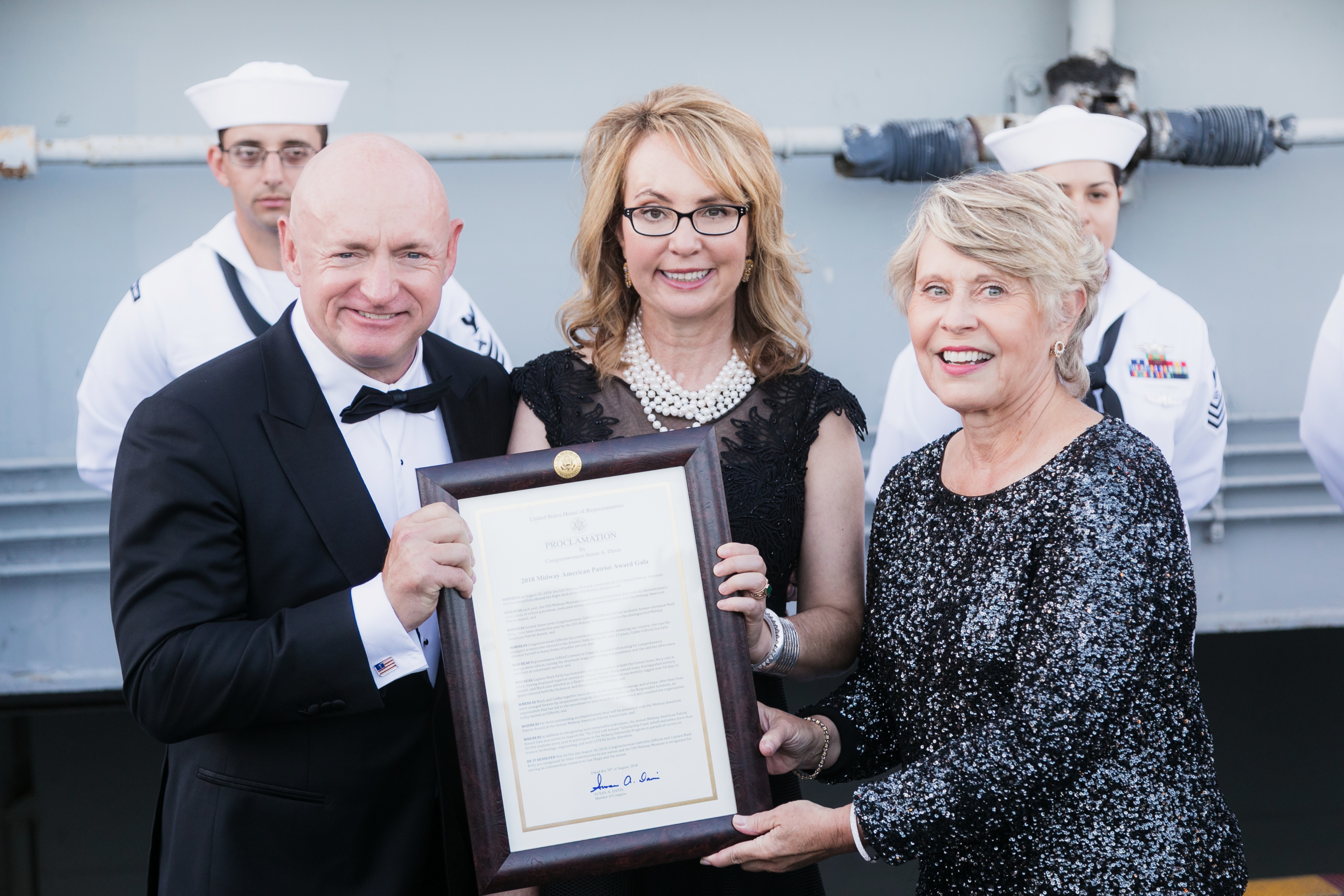 Congresswoman Gabrielle Giffords and CAPT Mark Kelly, USN (Ret.) were recognized for their lifetime dedication to public service, space exploration, and national security.